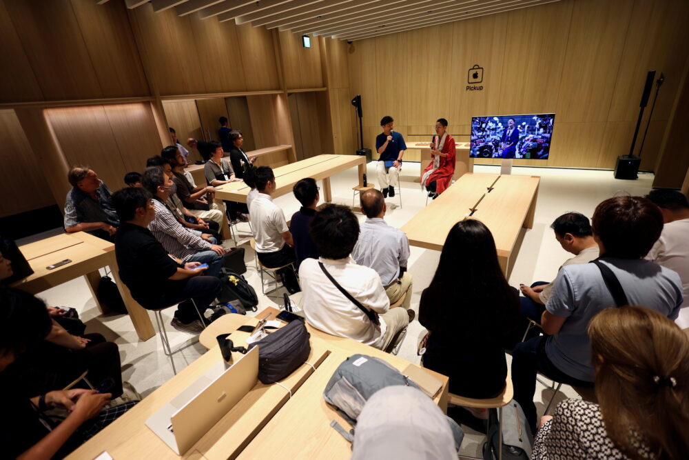 この日は、Apple梅田オープン前の、ビジネスチーム向けのToday at Appleということで、我々一部メディアのほか、地元ビジネスユーザーの方が招待されていた。枚方市の教育委員会の方もいらっしゃっていたので、学校へのiPad導入などについても、この店舗が引き継ぐのかもしれない。