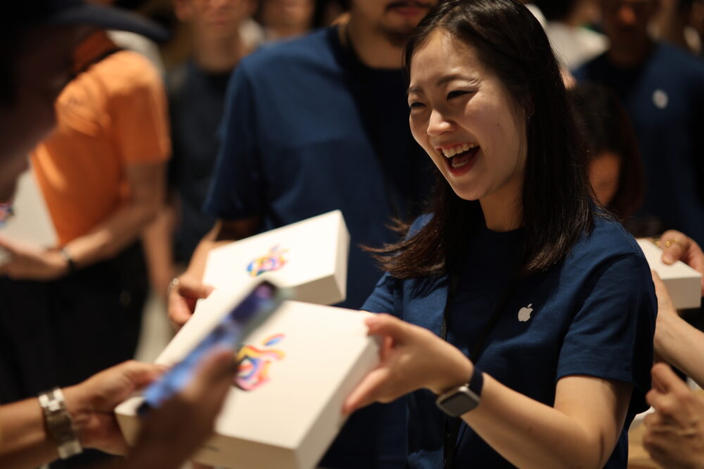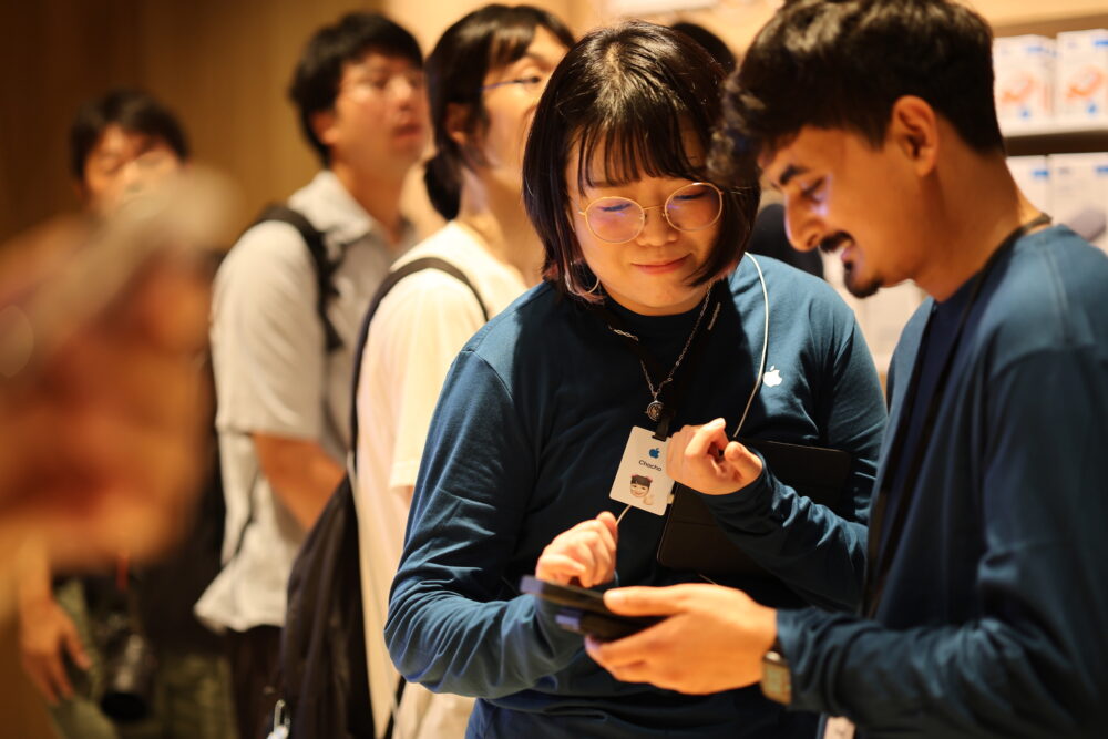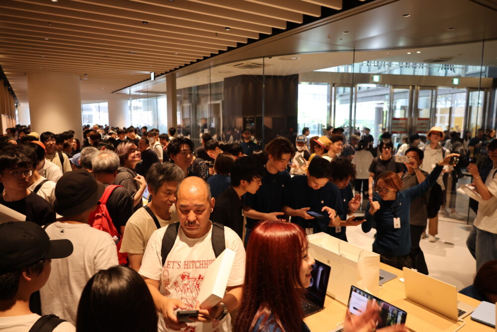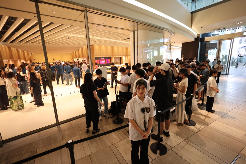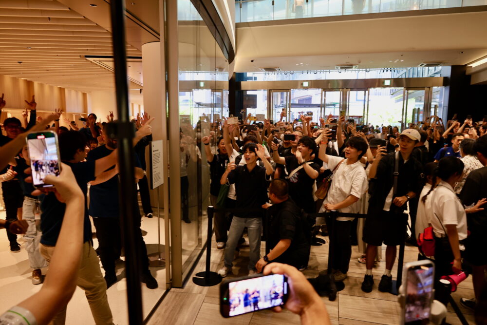 特に、大阪においては、2004年のApple心斎橋以来20年ぶりの新規店舗だ。行列の先頭に並んでいた若者にとっては、ほとんど生まれてから初めての地元でのApple Storeオープンということになる。そう思えばこの盛り上がりっぷりも納得だ。