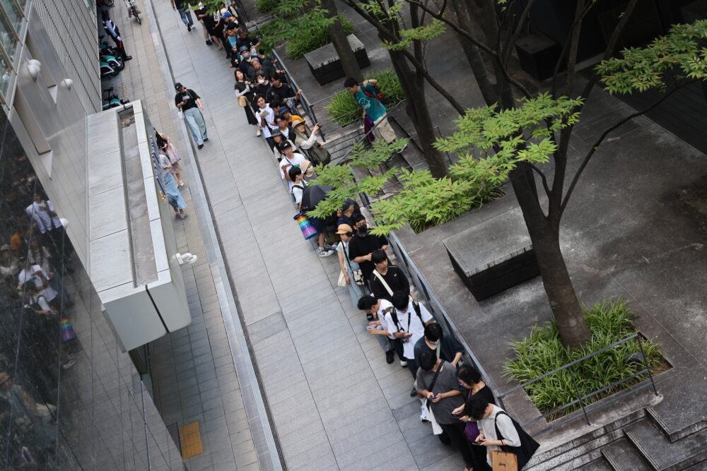 #Apple梅田 開店15分前全行列(長いです)。