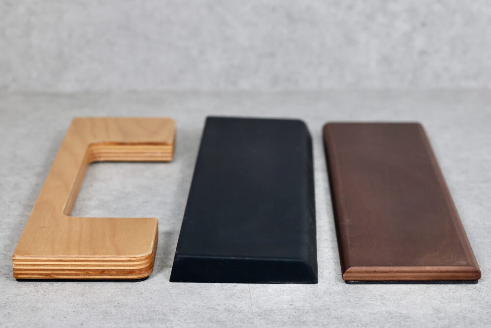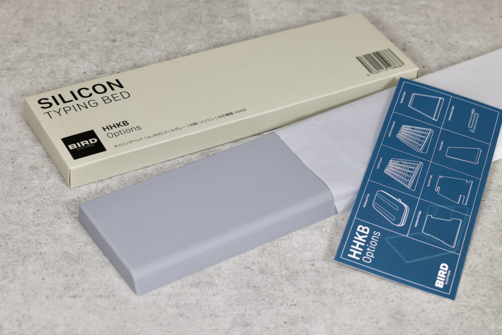 タイピングベッドは、HHKBのように高さのあるキーボードを使う時に、手のひらを乗せる道具。簡単にいえば板なのだが、厚さや、表面や裏面の素材などによって使い心地が違う。我々のような物書きやエンジニアなど、キーボードを長時間使う職種では、このタイピングベッドがフィットするかどうかによって、仕事の効率や、快適さが大きく変わってくるので、投資する価値のある製品だ。