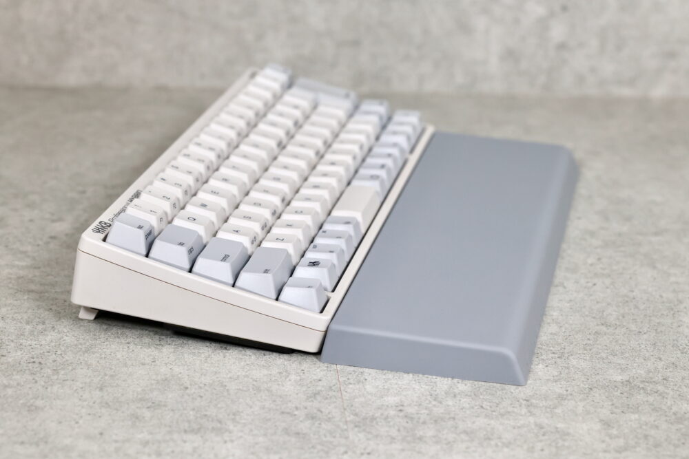 ご覧のように、奥が17mm、手前が16mmとわずかなスロープになっており、HHKBにピッタリと収まる高さだ。