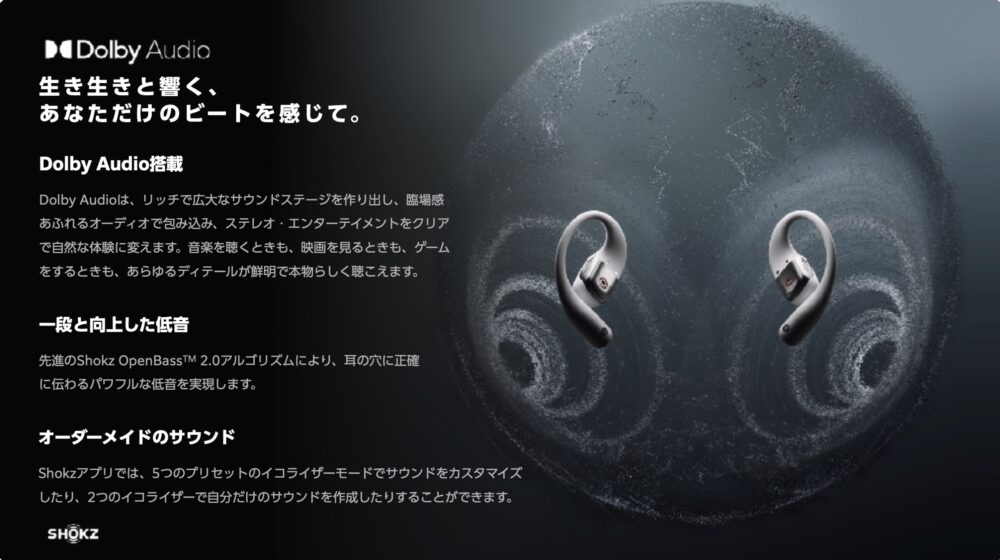 オープンイヤー式イヤフォンの本家ならではの、多彩なテクノロジー