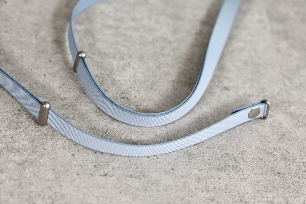 ステンレスの金具をスライドさせることで長さを調整するのだが、調整して二重になっている部分が、バラけずに、常にピッタリとくっついていてくれる。二重の部分が分かれてしまうと、肩を通す時に間違ったところに通してしまって面倒だったりするが、この仕組みならそんな心配もない。