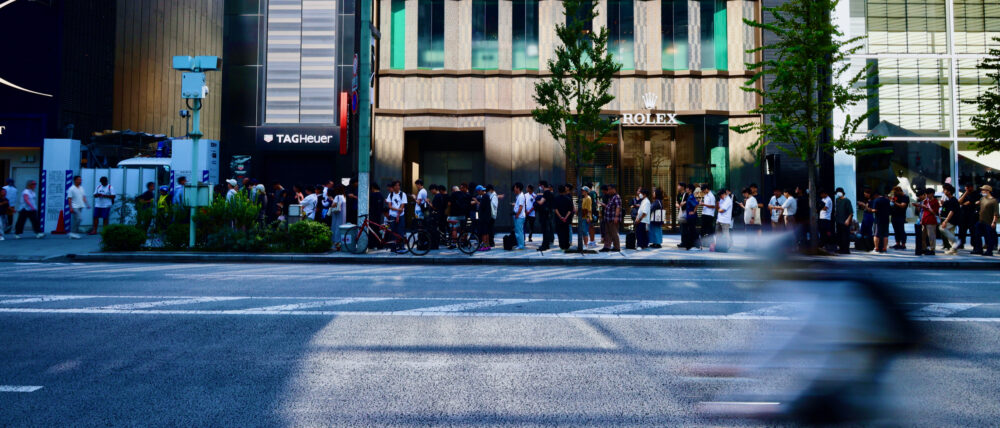 『特別な店の復活』を祝うため、いつものiPhone発売の行列より、はるかに多くのファンが集まった。行列は始発前には200人を超え、あっという間に銀座一丁目の方まで延びた。