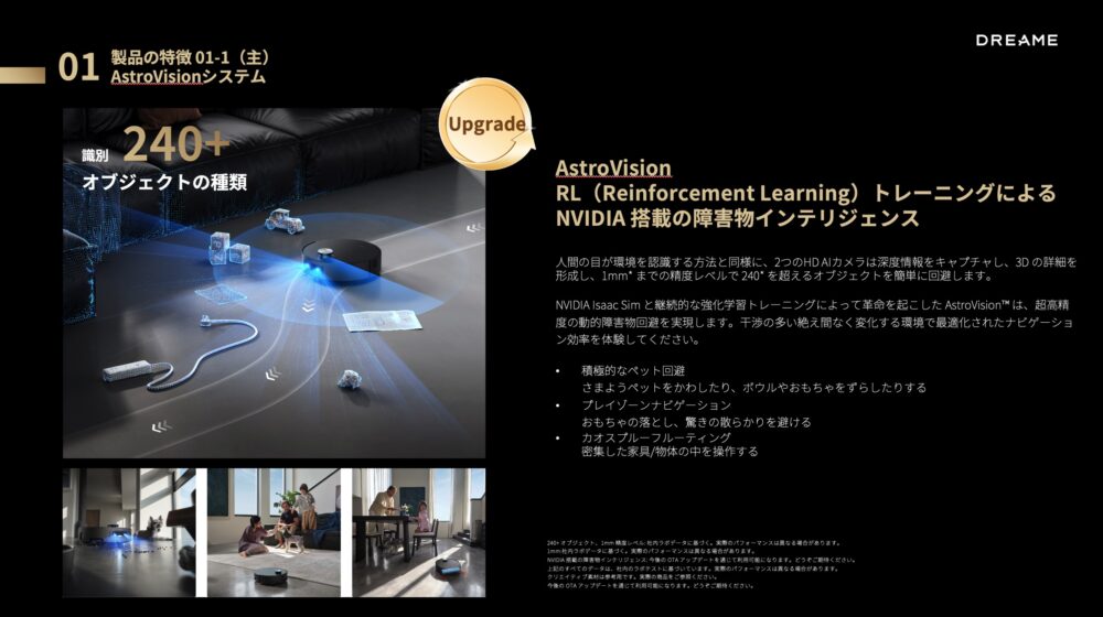 Dreameのコアテクノロジーは高速デジタルモーターと、AIアルゴリズムだそうである。