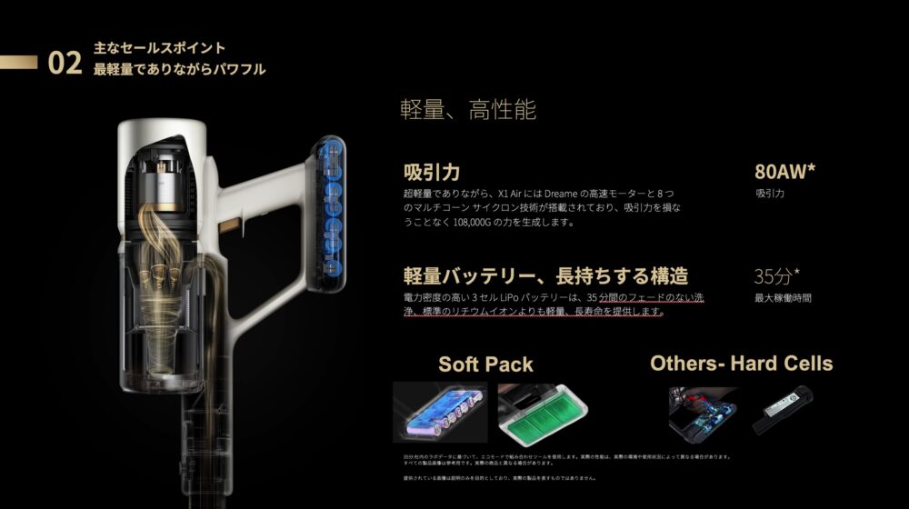 スティック型掃除機は、X1 Air(4万9800円)とX1 Slim(5万0800円)の2種類が発表された。これらの発売日は10月17日。