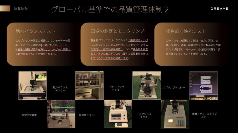 ここで使われるのは、ブラシレスDCモーターというものだが、これは複雑なモーターの巻き、それを制御する電子的テクノロジーにおいて挑戦の余地があったのだと思う。ブラシレスDCモーターといえば、ダイソンの掃除機のものが有名だが、おそらくその特許に抵触しないように数多くの新技術を開発したのだろう。Dreameの累計出願特許は1万件に達しているという。わずか8年の歴史しか持たない企業が1万件の特許を出願するということは、いかに多くの研究開発スタッフを擁しているかの証左でもある。