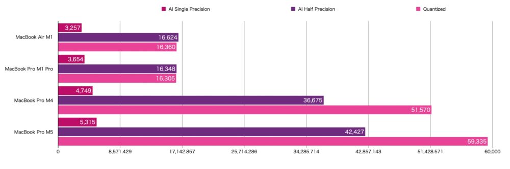 最後に、Geekbench AIの数値もグラフ化しておこう。