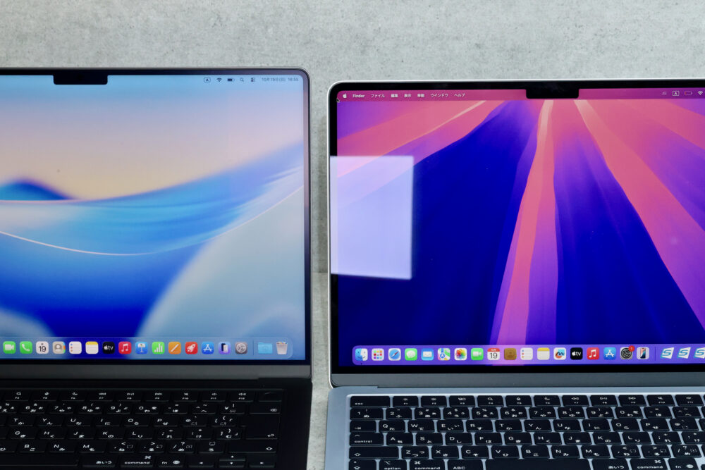 前モデルでいえば、スタンダードモデルのMacBook Proが搭載するM4チップは、MacBook Airの搭載するものと基本的には同じである(MacBook AirはGPUが8コアのモデルも選択可能)。しかしながら、性能は同じではない。MacBook Airは放熱ファンを持っておらず、自然の熱伝導と放熱に頼るしかない。しかし、MacBook Proは温度に応じて回転数を調節する放熱ファンを持っているので、長時間高負荷に耐えることができる。