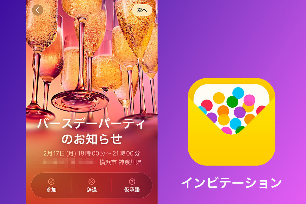 iPhone用の新アプリ『Appleインビテーション(英語名:Apple Invites)』が、2月4日に突如公開された。イベントの詳細をページとして共有し、参加の可否をまとめたり、写真や音楽を共有したりできるアプリだ。利用は無料で、招待を受ける側は、アップルデバイスやiCloudアカウントを持って...続きを読む