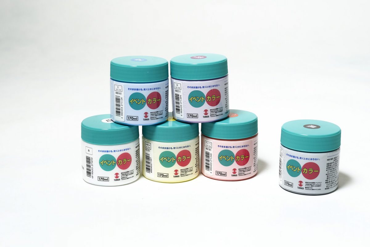 学園祭などでお馴染みのアクリル系絵具イベントカラー。20〜40分でほぼ乾き1日で完全に固まる。希釈なしですぐ使えるのが嬉しい。495円(170㎖)