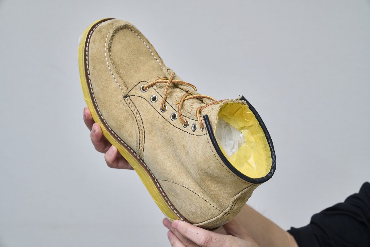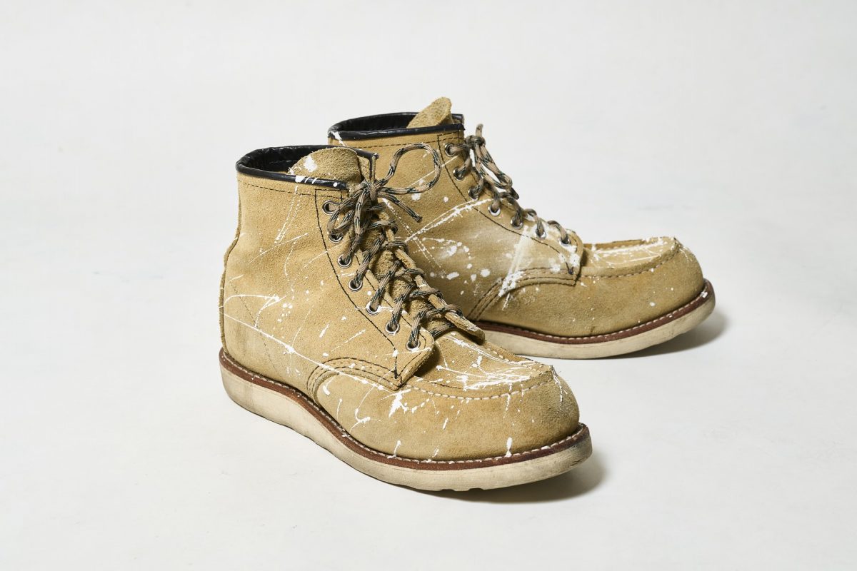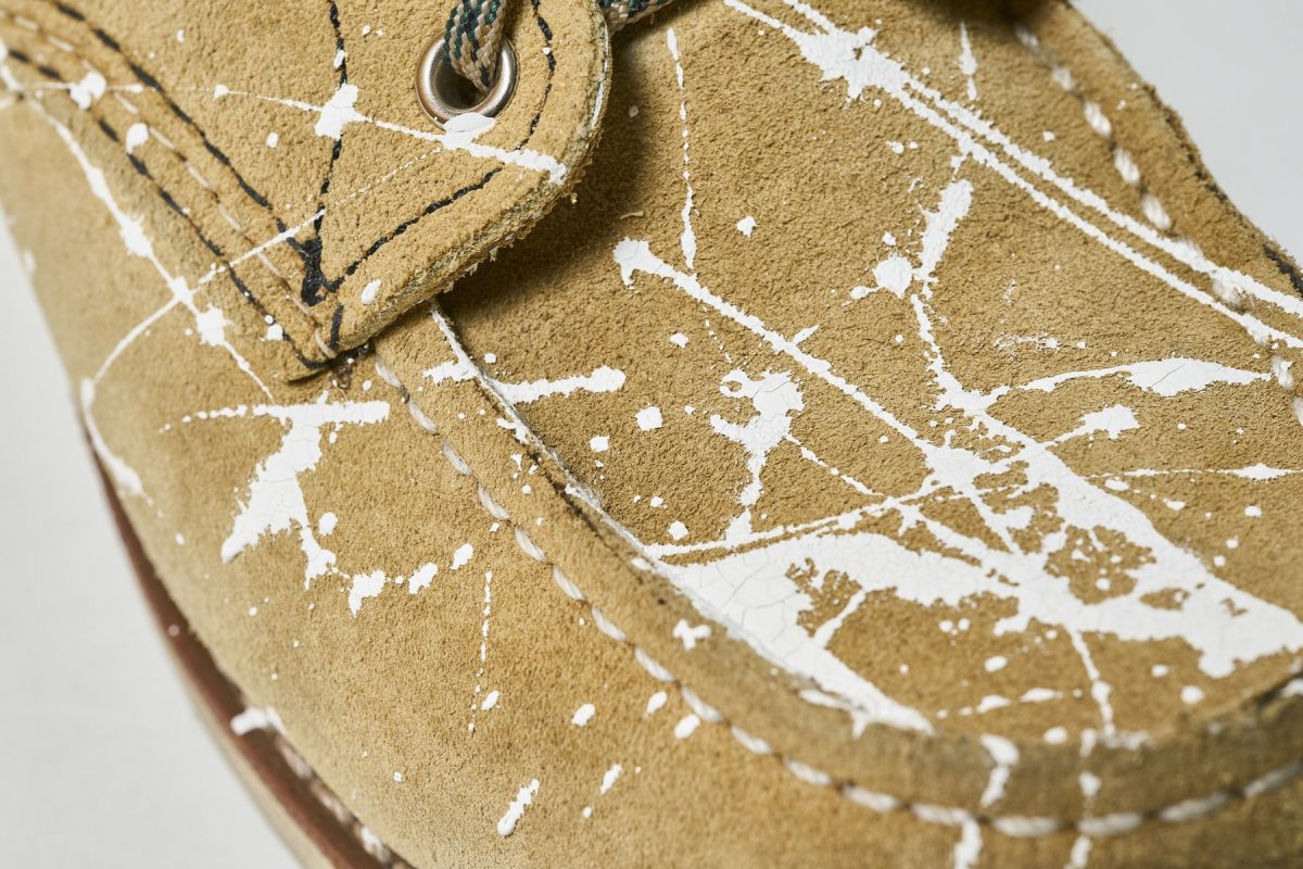 履き込んだブーツ(特にスウェード)は汚れが目立ちがち。メンテで汚れを落とすのは王道だけど、スプラッシュで汚れを目立たなくさせるという逆転の発想はいかがだろうか? ペンキを掛けたくない部分にマスキングを施したら、後は筆に塗料を含ませて勢いよく振り飛ばすだけ。振る速さやペンキの量などで表情が変わってくるぞ!