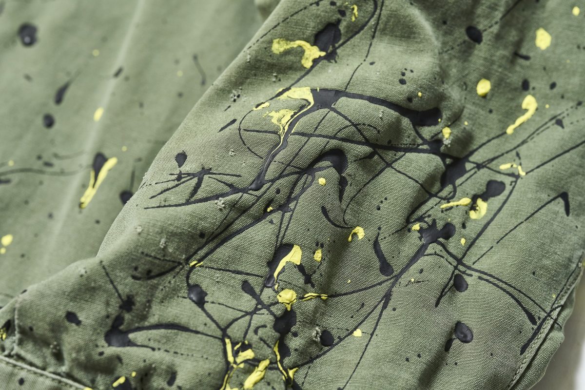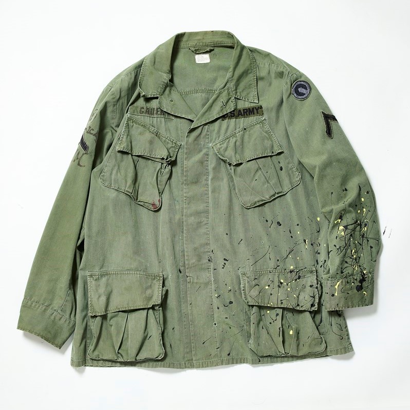 ジャングルファティーグが生まれたベトナム戦争時代を考慮し、弾薬箱などに施されたブラックやイエローのステンシルをイメージ。「当時の持ち主がステンシルをしていたら」という空想で色を決めるのも楽しい。