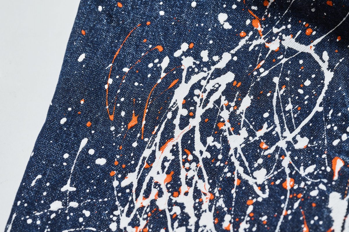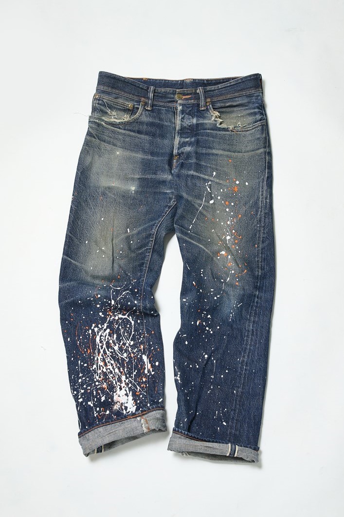 古着でもたまに見かけるペンキが付いたジーンズ。アメリカの田舎の情景が浮かぶようでスプラッシュペイントとも相性抜群。白はもちろん相性はいいが、せっかくなのでステッチに合わせたオレンジをチョイス。