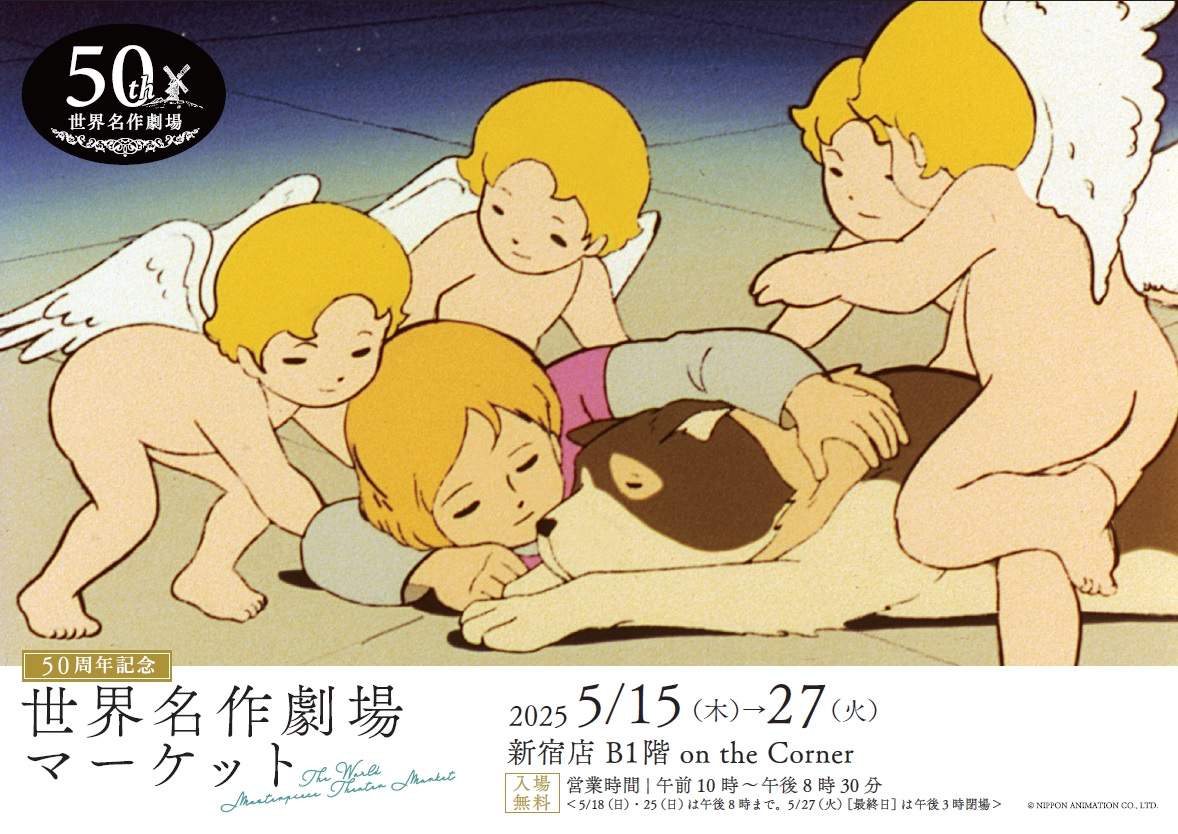 京王百貨店 新宿店では、2025年5月15日(木)から27日(火)までの期間、地下1階 on the Cornerにて「50周年記念 世界名作劇場マーケット」を初開催する。日本アニメーション株式会社が制作・ライセンス展開を行う「世界名作劇場」は、1975年放送の『フランダースの犬』から始まり、『あら...続きを読む