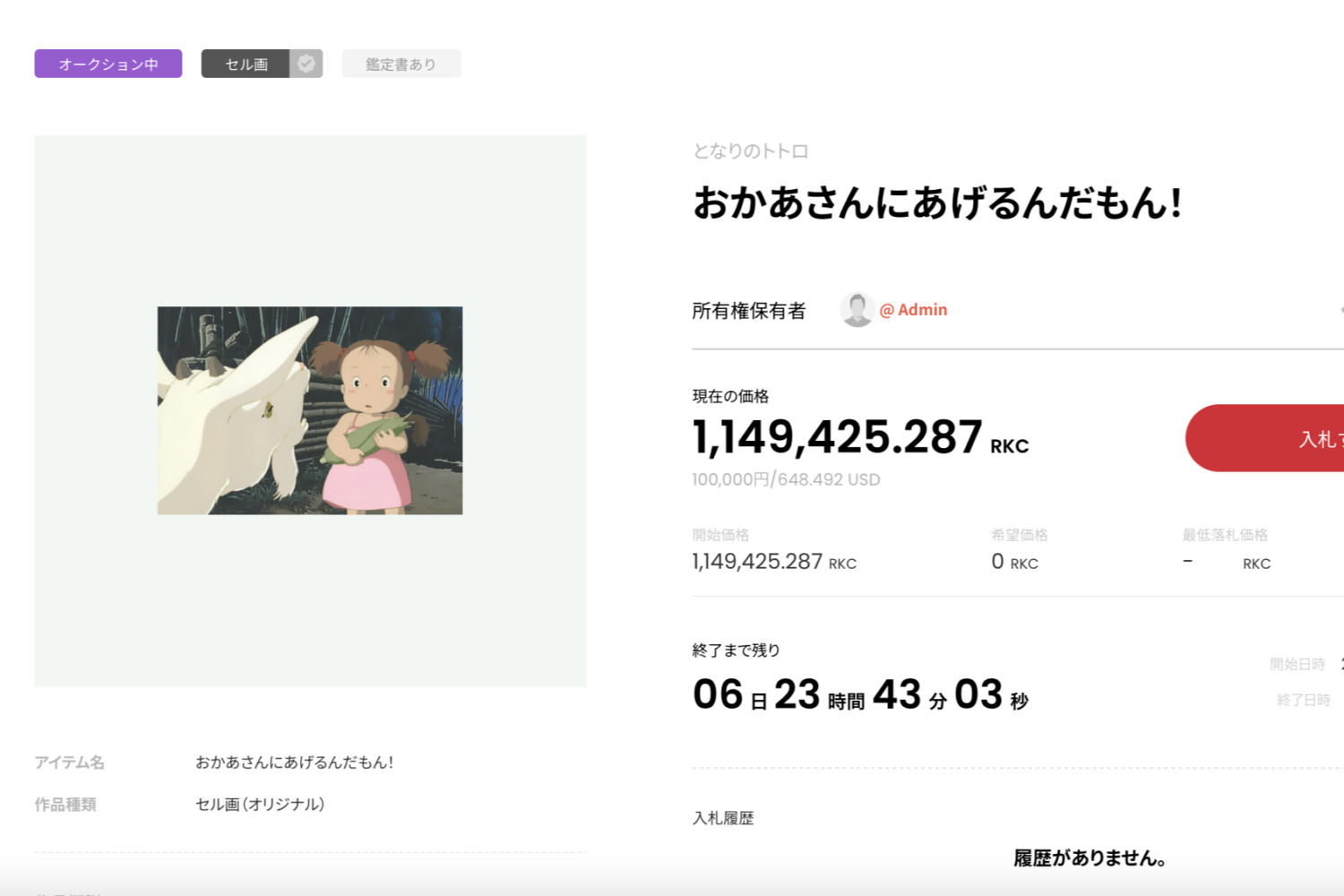 RAKUZA株式会社(本社:東京都、代表取締役:甲斐義和)は、2025年1月28日から2025年2月4日の期間、楽座NFTマーケットプレイスにおいて、第二回目のRKCを使用したセル画所有権のNFTオークションを開催する。本オークションでは、アニメーションの歴史を彩る貴重なセル画の所有権をNFTとして...続きを読む