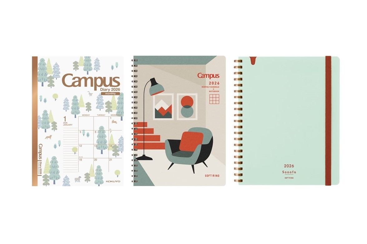 コクヨ株式会社は、キャンパスノートと同じ紙を使用した書き心地が人気の「キャンパスダイアリー」、手当たりが気にならないやわらかリングが特長の「ソフトリングダイアリー」、ノートもダイアリーも1冊にまとまる「Sooofaダイアリー」の2026年版を2025年8月中旬から順次発売する。 キャンパスダイアリ...続きを読む