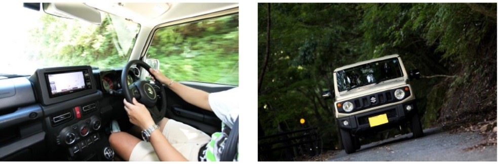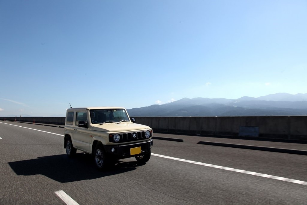 これまでのジムニーを乗ったことがある方なら、歴代モデルと大きく違うと感じるポイントが、オンロードでの走行性だろう。圧倒的なオフロード性能とは裏腹に、高速道路の100㎞/h巡行でエンジンが唸ってしまうという小排気量の弱点を、今回の新型ジムニーは改善! 良い意味でジムニーに乗っているということを忘れそうになるほど高速道路もストレスフリーで走行可能となっている。