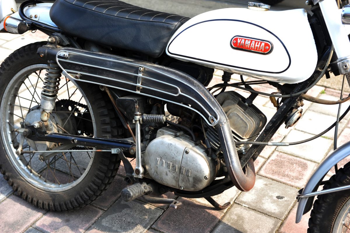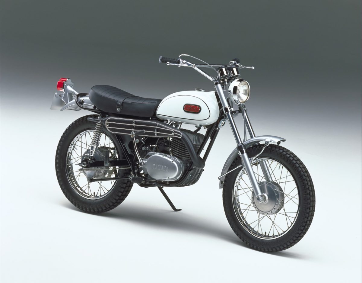 発売当時、国産車最長ストロークだったフロントフォークに大径のブロックタイヤ、センターブレースつきハンドルなど、本格的なオフロード走行を前提とした装備を持つモデル。アメリカでも大ヒットした。