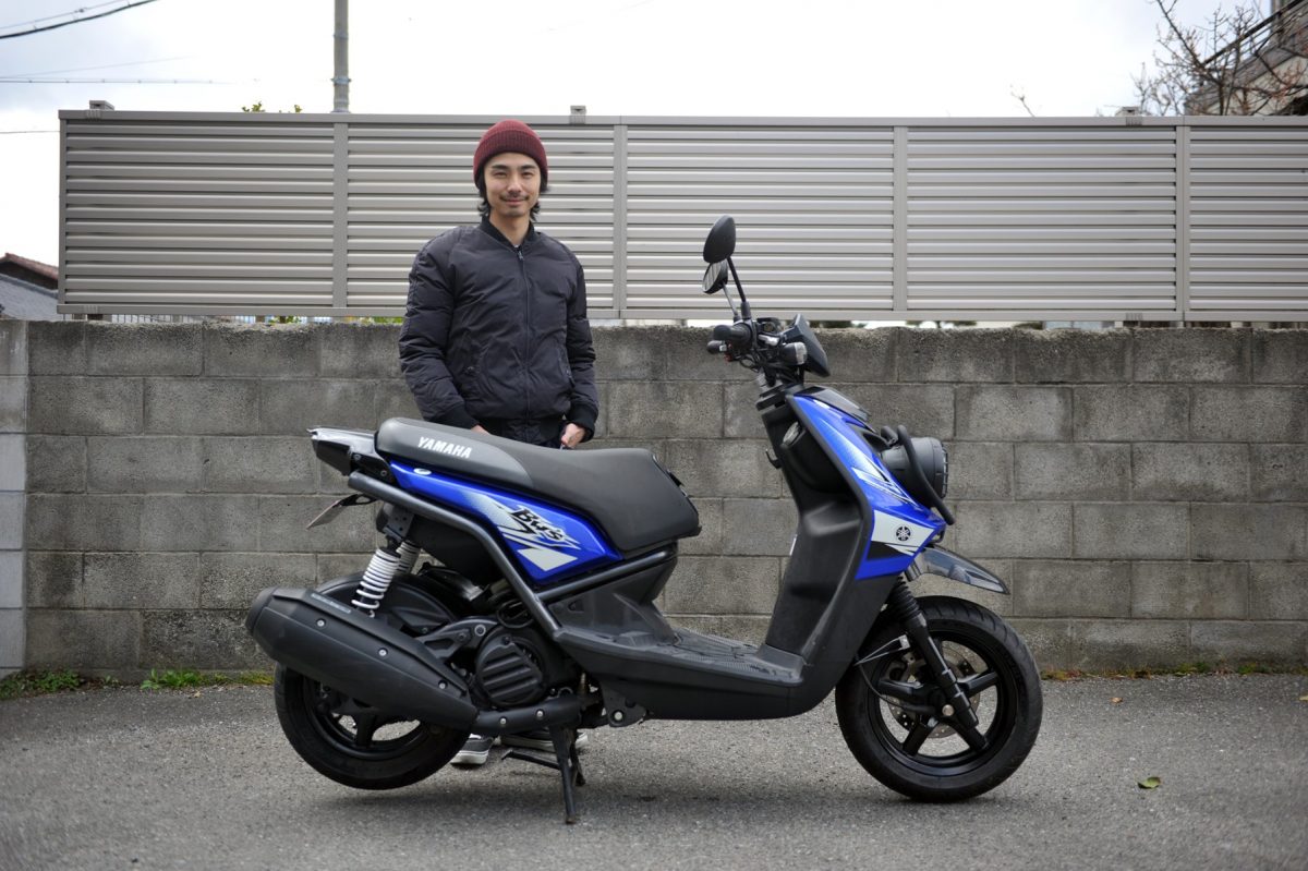 二灯式ヘッドライトやレンズガードなど、街乗りだけでなく実際にオフロードでも走行が可能なBW’S125。国内ばかりか海外でも支持され、モデルチェンジを重ね現在も販売されるほどの人気車種。「唯一無二なデザインが大好きです。男らしい雰囲気にやられました」