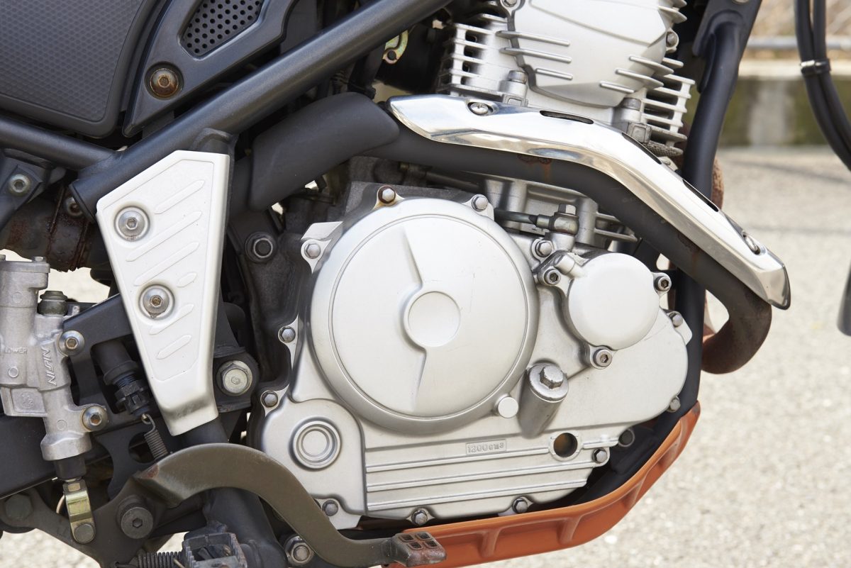 クルーザーのXV1600用のVツインエンジンをベースに、メッキシリンダーや鍛造ピストンを採用。チタンマフラー、アルミダイキャストフレームなどの最新装備と、先端を行くデザインが存在感を演出する。