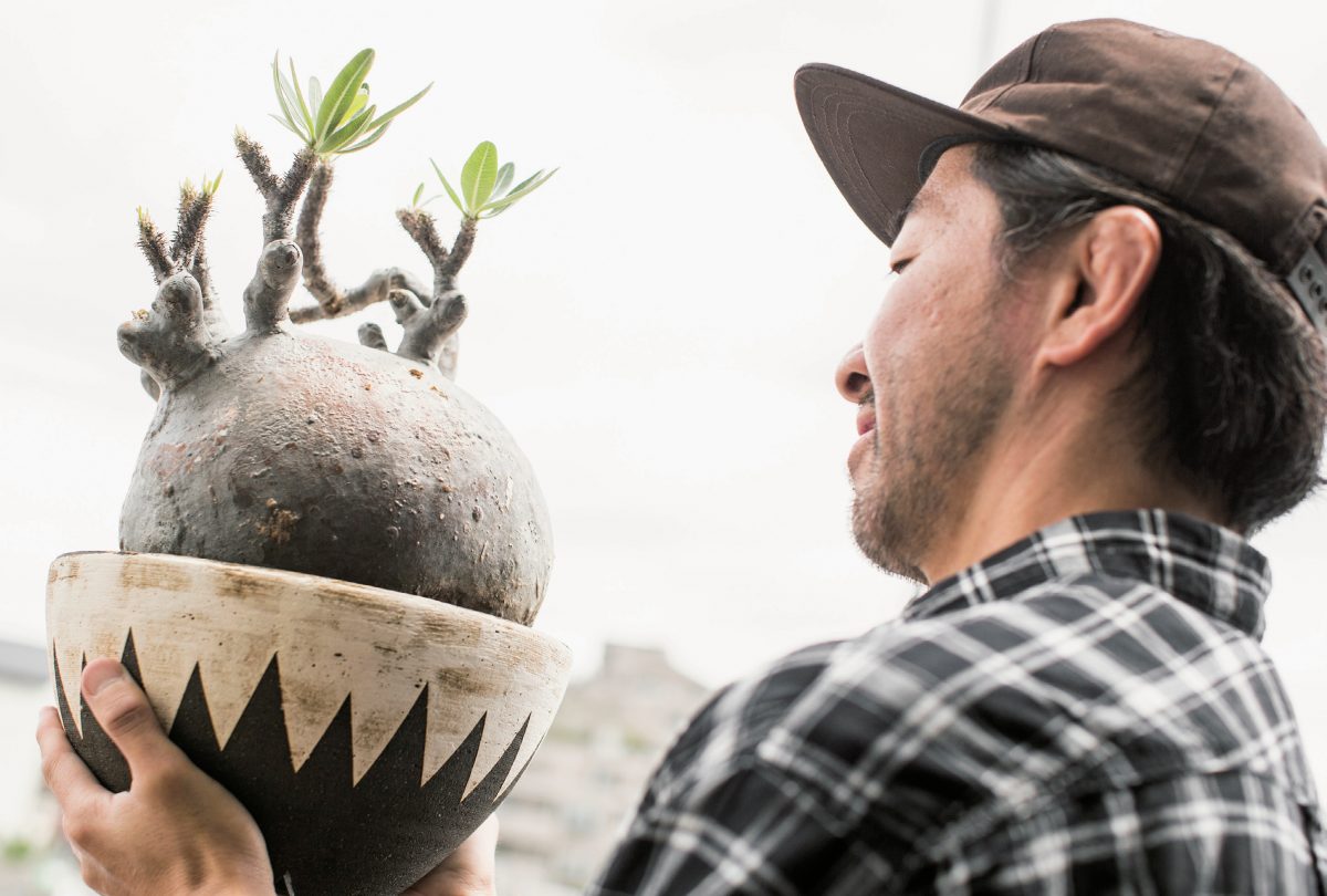 塊根植物やアガベなど植物の醍醐味のひとつが、お気に入りの鉢に植え替えて、自分だけの組み合わせを楽しむこと。近年では、インビジブルインク(invisible ink)やトーキー(TOKY)など男心をくすぐるような武骨な鉢が増えていて、男らしい植物を合わせればその効果は倍増していく。ただ忘れちゃいけないのが植物は生きているため、植え替えは適切な季節と手順でやるのがマストである。そこで植え替え作業の基礎を、パキポディウムに代表される塊根植物ブームの仕掛け人のひとりである横町健さん(ボタナイズ)にレクチャーしてもらったぞ!