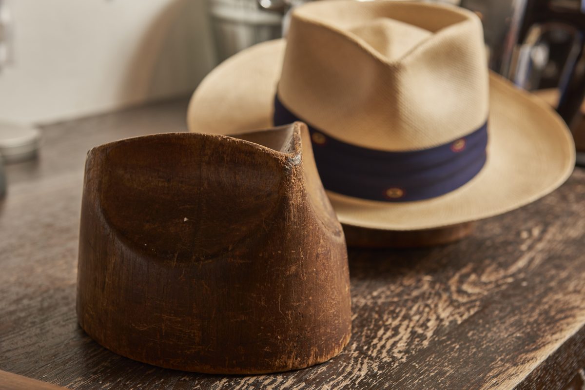 「基本的に信頼できるファクトリーに生産を依頼していたので、自身のハンドメイドで1から作るということはしてなかったんですよ。OEMの取引先から特殊なオーダーがあっても、工場の設備や技術に任せることしかできないことにジレンマを感じていて。そもそも日本にはハットの原型となる木型を製作できる工場がありませんでした。そして10年ほど前にアメリカ出張で、1940年頃の木型に出合います。それを日本に持ち帰って、このようなものを作って欲しいと様々な工場を訪れました。そして紆余曲折を経て、どうにか木型を製作し、ハッターとして活動することになったんです」