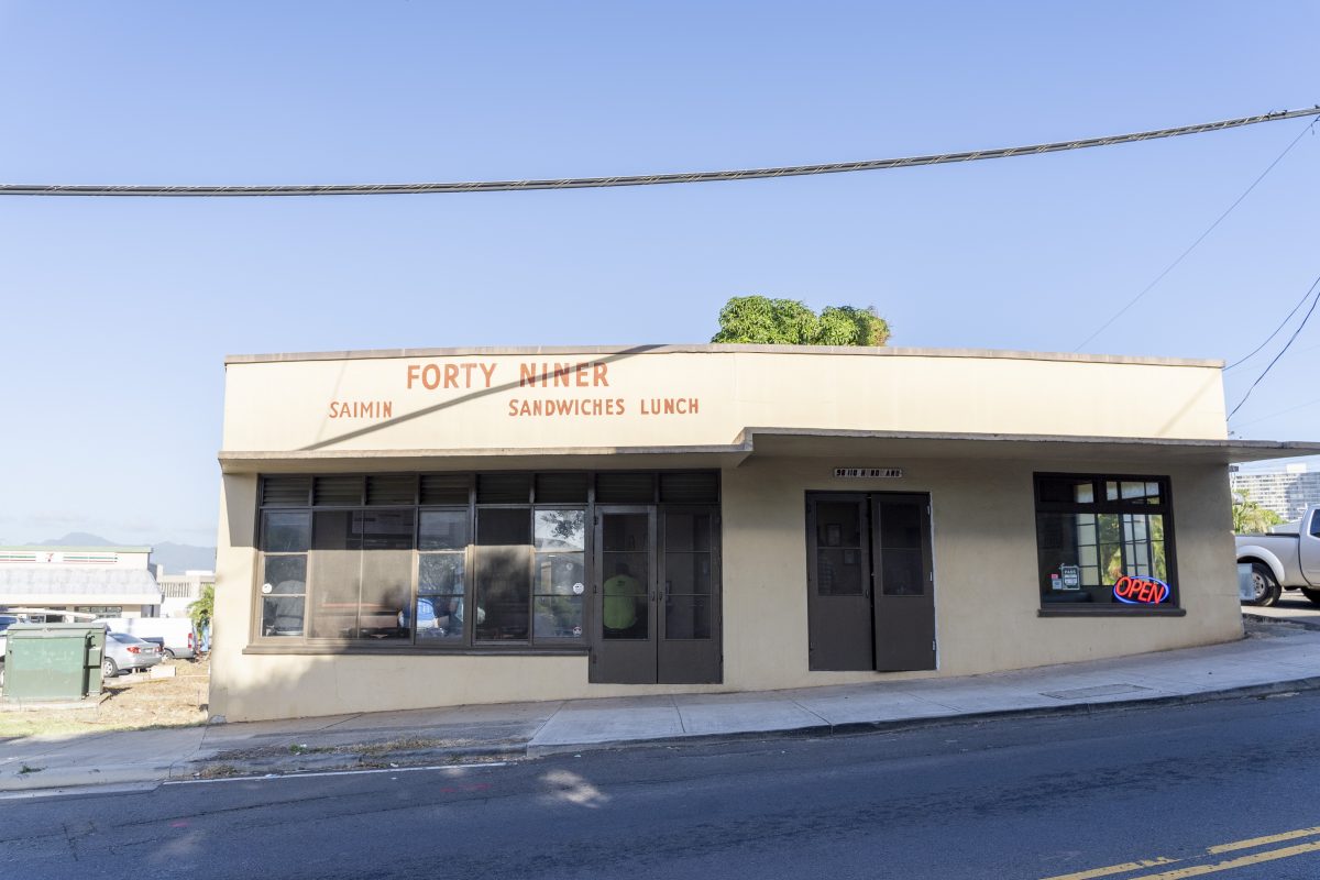 ワイキキのオシャレな雰囲気のレストランもいいけれど、ローカル飯を食すにはやはりローカル感漂う店を選びたい。ワイキキからクルマで30分、バスで1時間とかなり遠いエリアにあるが、その昔、某テレビ番組の汚いけれど旨い店を選ぶ企画で三ツ星を獲得した『フォーティナイナー』がまさにそれ。