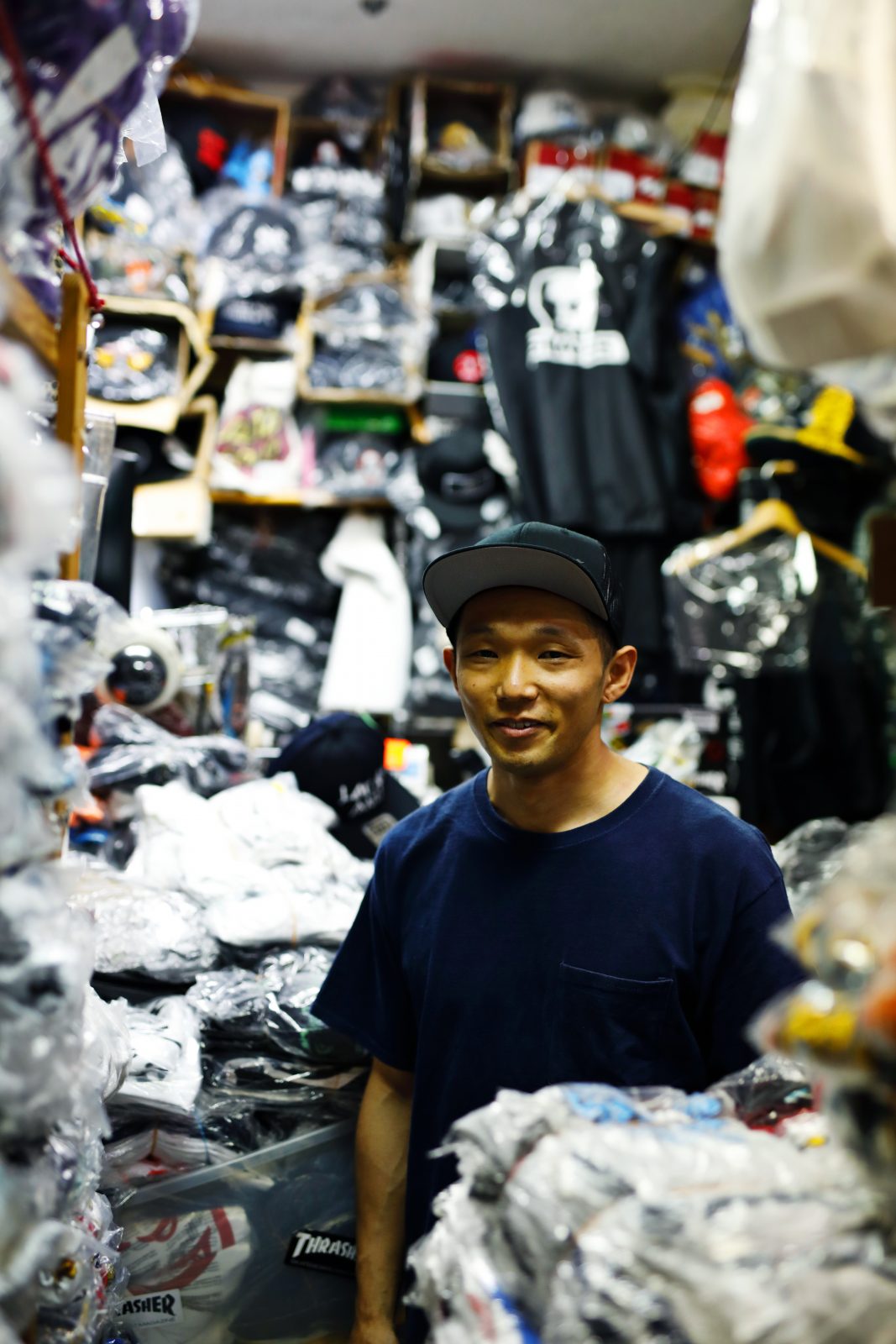 上野のランドマークでもあるセンタービルの3階。2003年にアメ横の一角でスタートし、2005年頃にいまの場所に移転したスケートTee専門店『ジョニービー』。ひとたび足を踏み入れると、圧倒的な物量に誰もが驚愕するだろう。うず高く積まれた、パウエル・ペラルタ、スラッシャー、サンタクルーズ、ドッグタウンといったオールドスクールスケートアパレルの山は、まさに旧きよきアメ横の様相を思わせる。実はこう見えて商品のほぼ全てが近年復刻されたモデル。2000年代に入ってから急速に進んだオールドスクールスケートカルチャーへの再評価によるところだと店長の岩田さんは言う。