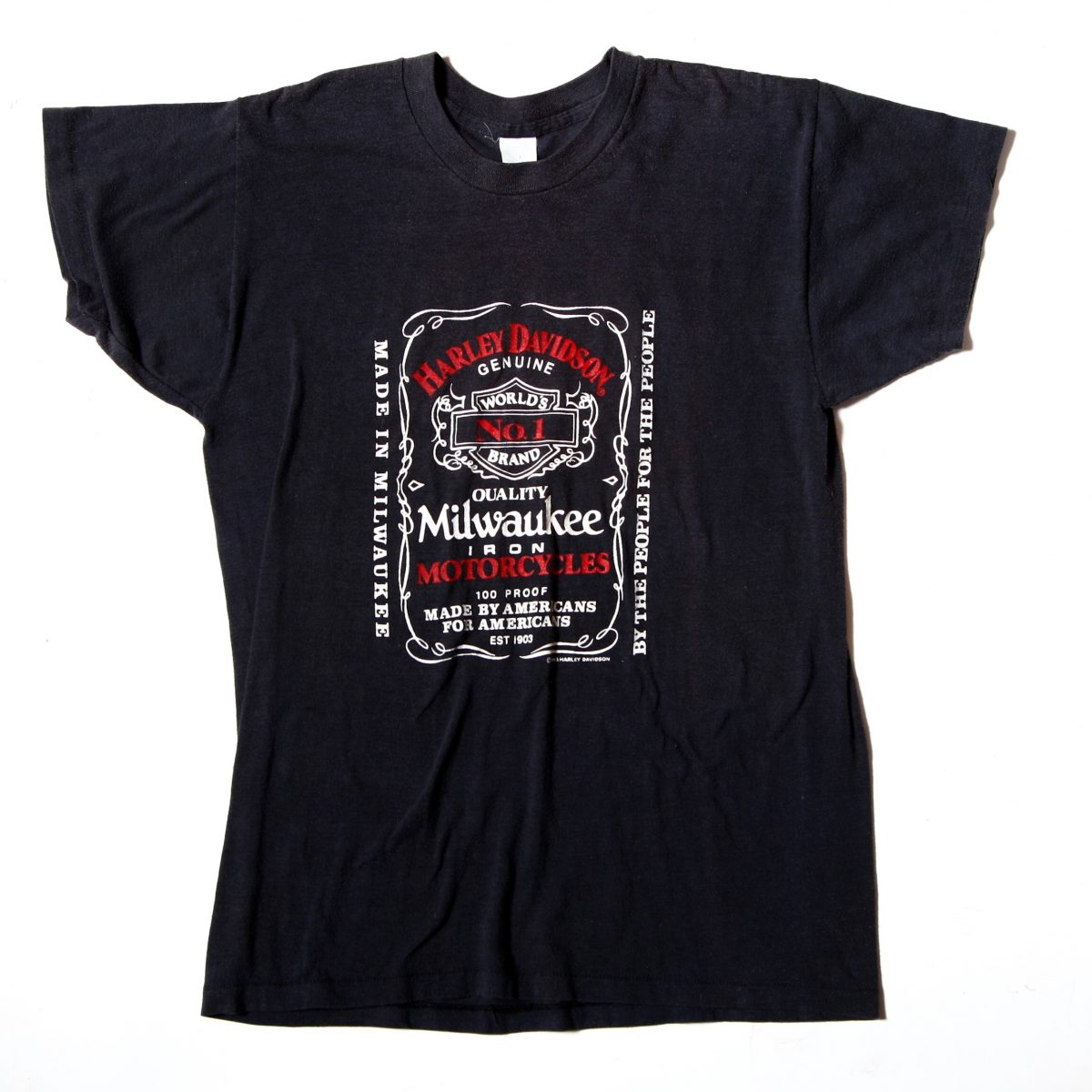 ’80年代前後に台頭し始めたハーレーT(バイクT)。ハーレーのディーラーごとにデザインされたものが多く、デザインも様々。