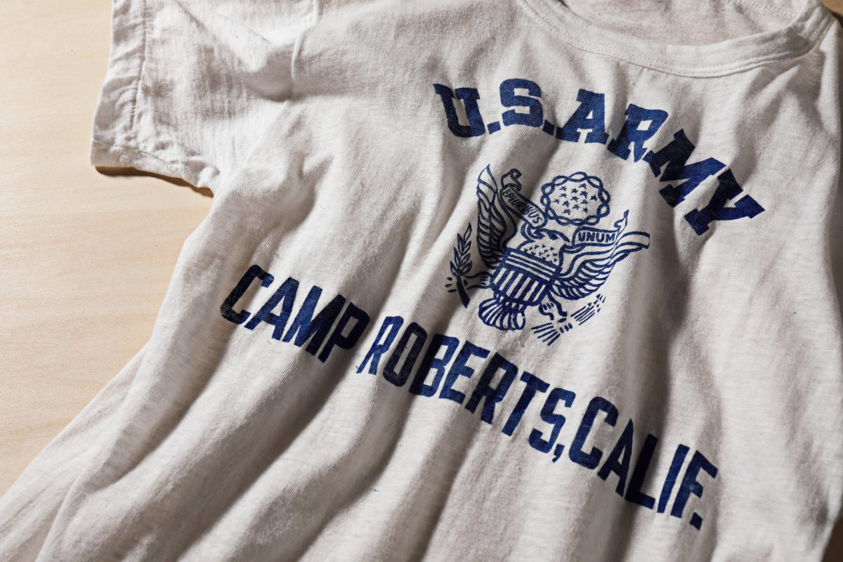 軍の基地名や部隊名などが施されたTシャツ。士官学校のプリントはある意味ミリタリーでもありカレッジでもある。
