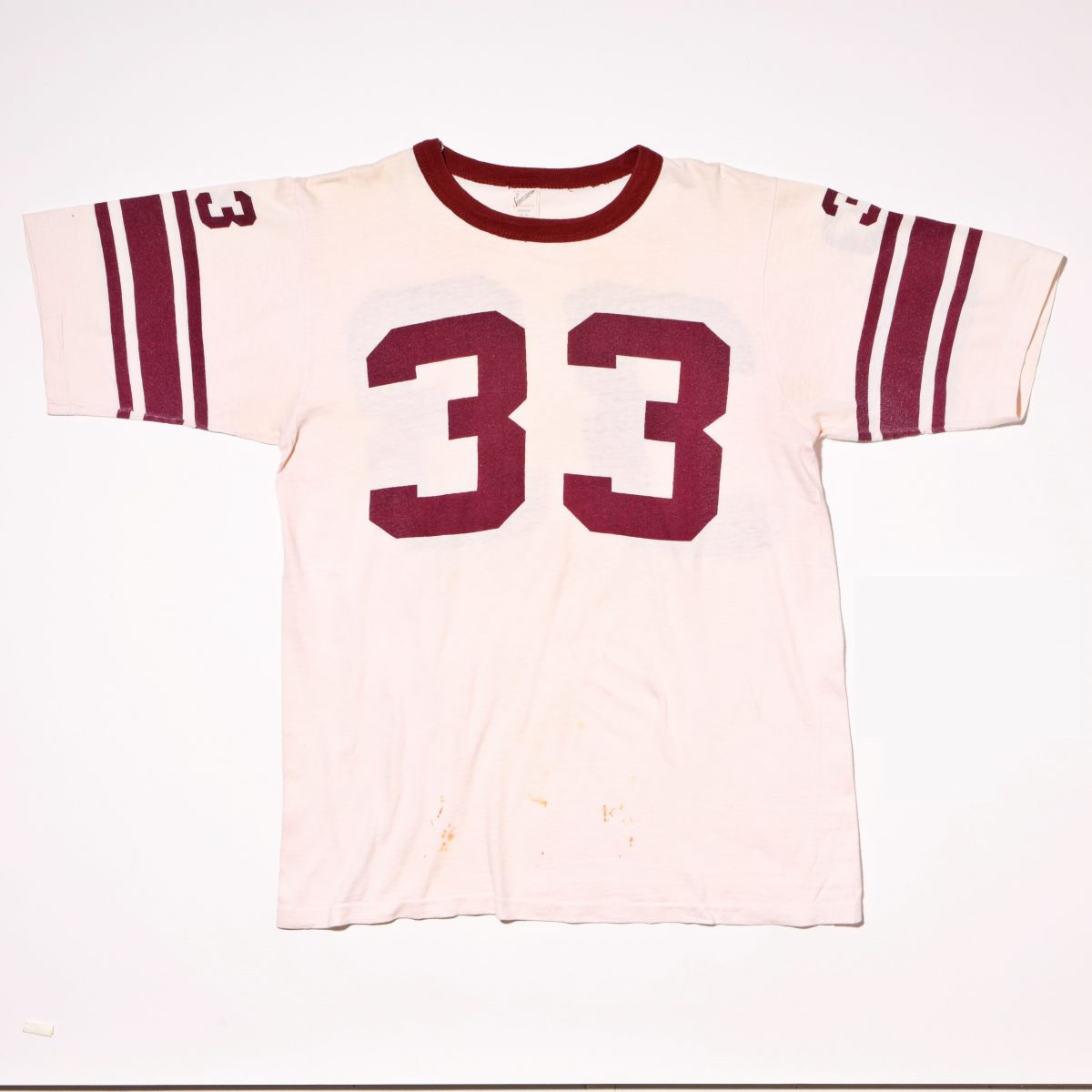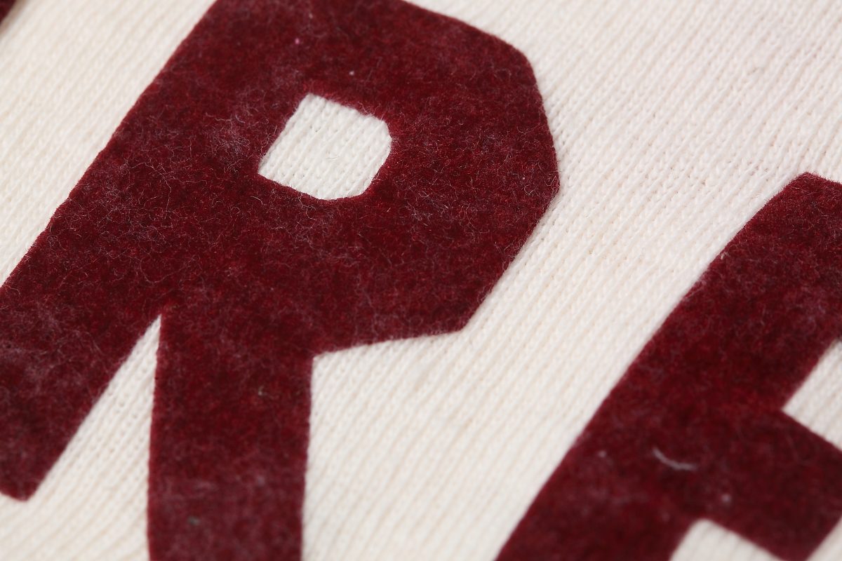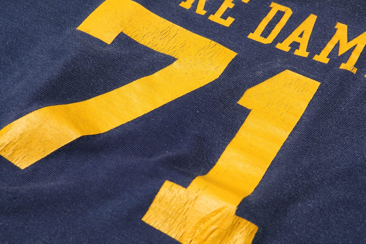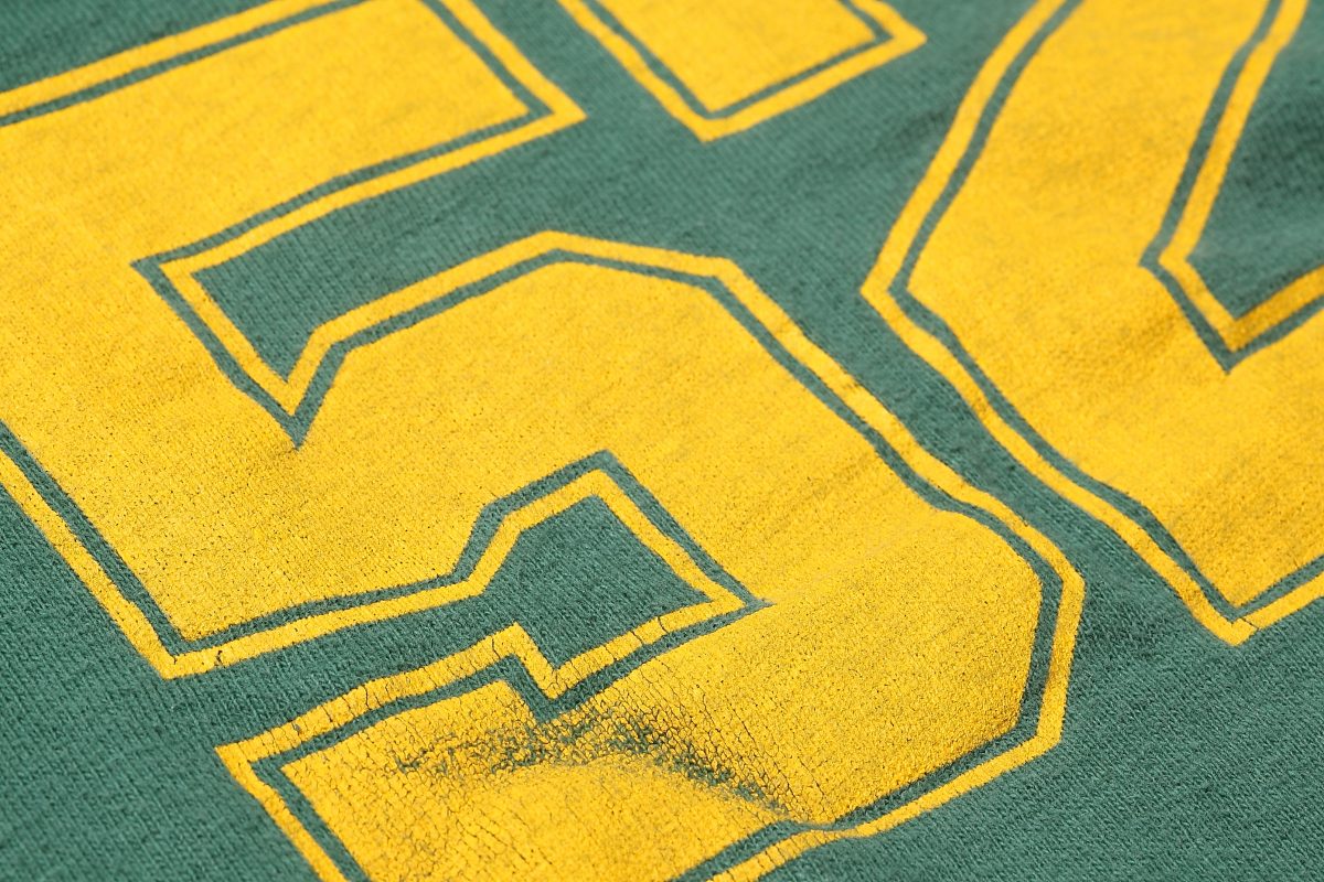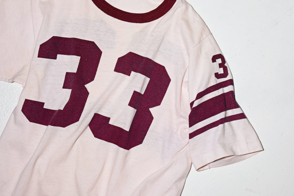 プリントの起源となるのがウールフェルト。スポーツウェアの背番号や大学の体育の授業で貸し出すための管理番号として採用されていた。Tシャツに番号をレタリングするというアメリカならではの発想がなければ、今日の豊富なプリントは生まれなかったかもしれない。