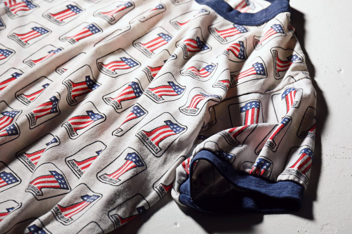 生地の全面にプリントが施されたデザインを指す。’70年代には企業ロゴが多いが、柄やフォトプリントなど種類も豊富。
