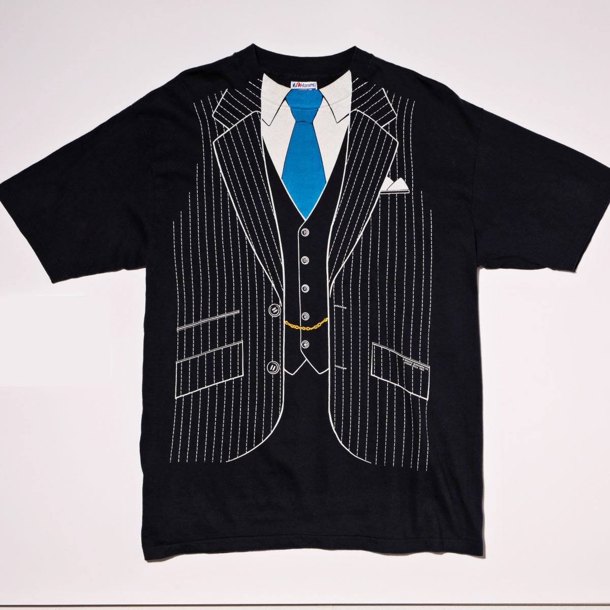 まるで別の服を着ているようなプリントが施されたTシャツ。タキシードやマッチョボディなどユニークなアイデアばかり。