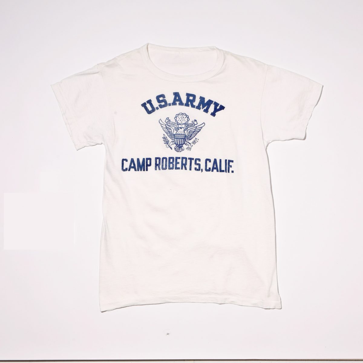 Tシャツを一枚で着るという文化は戦後に誕生。後に大学や軍が運動着として貸し出すための管理用として学校名や基地名、番号などを施したものがプリントTの起源となる。