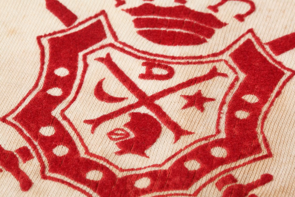 ペンキプリントのデメリットを解消するべく’70年代頃に誕生した油性ラバープリント。細かいデザインにも対応し、伸縮性があるため剥がれにくいのが特徴。