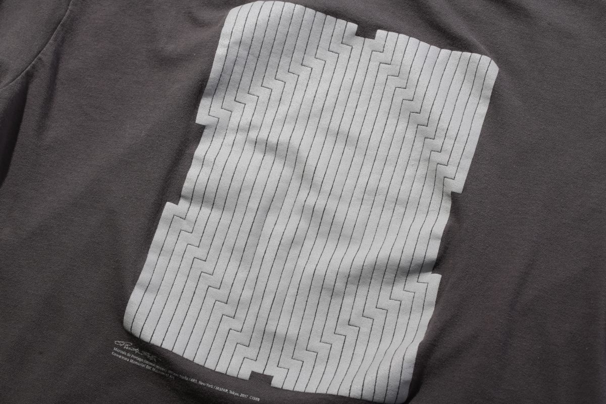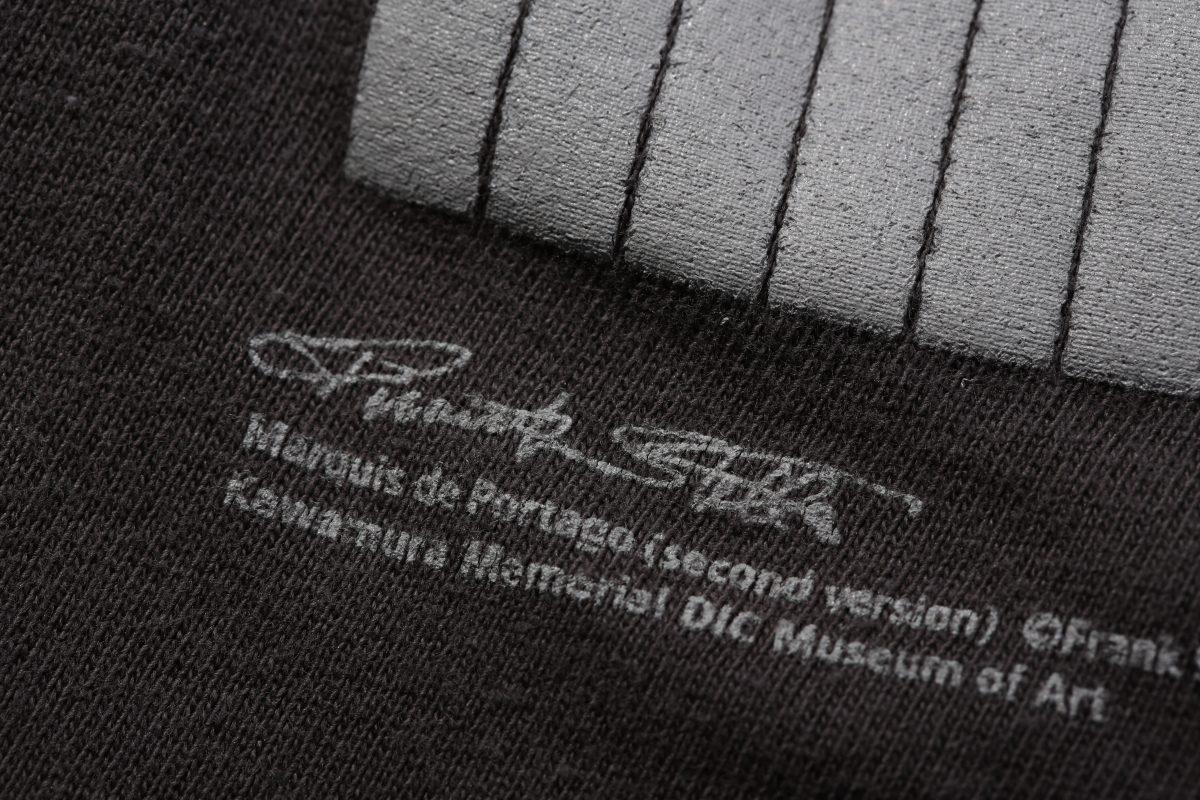 そんな興奮冷めやらぬ状態で展示物をひと通り見終わった後、ふらりとミュージアムショップへ。そしたらフランク・ステラの作品をプリントしたTシャツが売っているではないか! というわけで即購入。一見、訳のわからない(一見じゃなくてもわからない)抽象主義の作品「ポルタゴ侯爵」を落とし込んだ、シンプルデザインに一目ぼれ。こんな掘り出し物に出会えるなら、いろんな場所のミュージアムショップ巡りを趣味にしようかな?