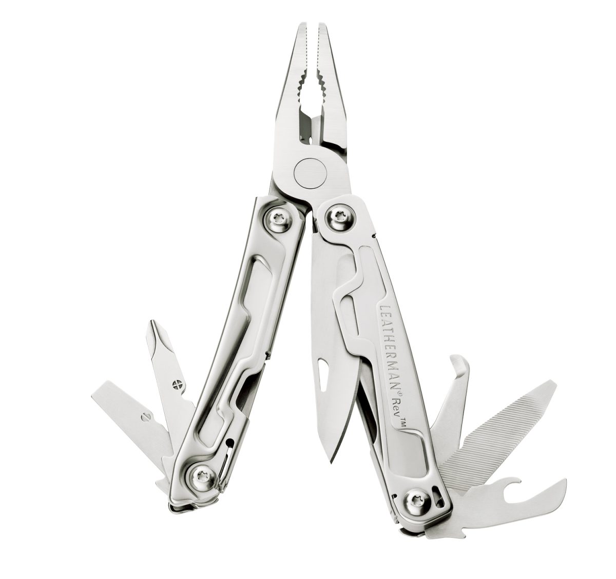 ナイフ、ドライバー、栓抜き、缶切り……、ひとつで様々な問題を解決してくれるマルチツールはまさに災害時の必需品。そこで手にしたいのは、アメリカ生まれのミスタータフガイ「レザーマン」のREVだ。防災時にも活躍する14ものツールがコンパクトな手のひらサイズに収まっているエントリーモデル。