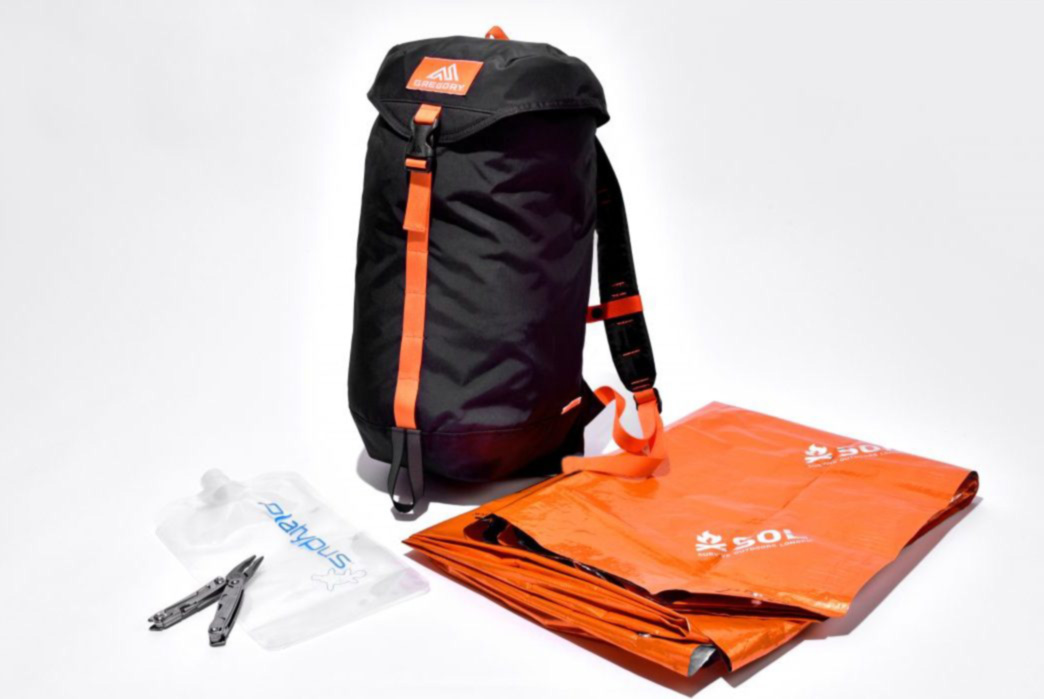 そこに災害時にあるべきマストな3アイテムを厳選してピックアップ。ナイフからペンチ、ドライバーなどがまとまったマルチツールの「レザーマン」。水が入っていない時は小さく畳んで収納できる水筒「プラティパス」。そして、想定外の様々な用途に対応する「SOL」のブランケット。これらの3アイテムをグレゴリー×ライトニングのエマージェンシーバッグとを組み合わせた防災セットとして発売するのだ。