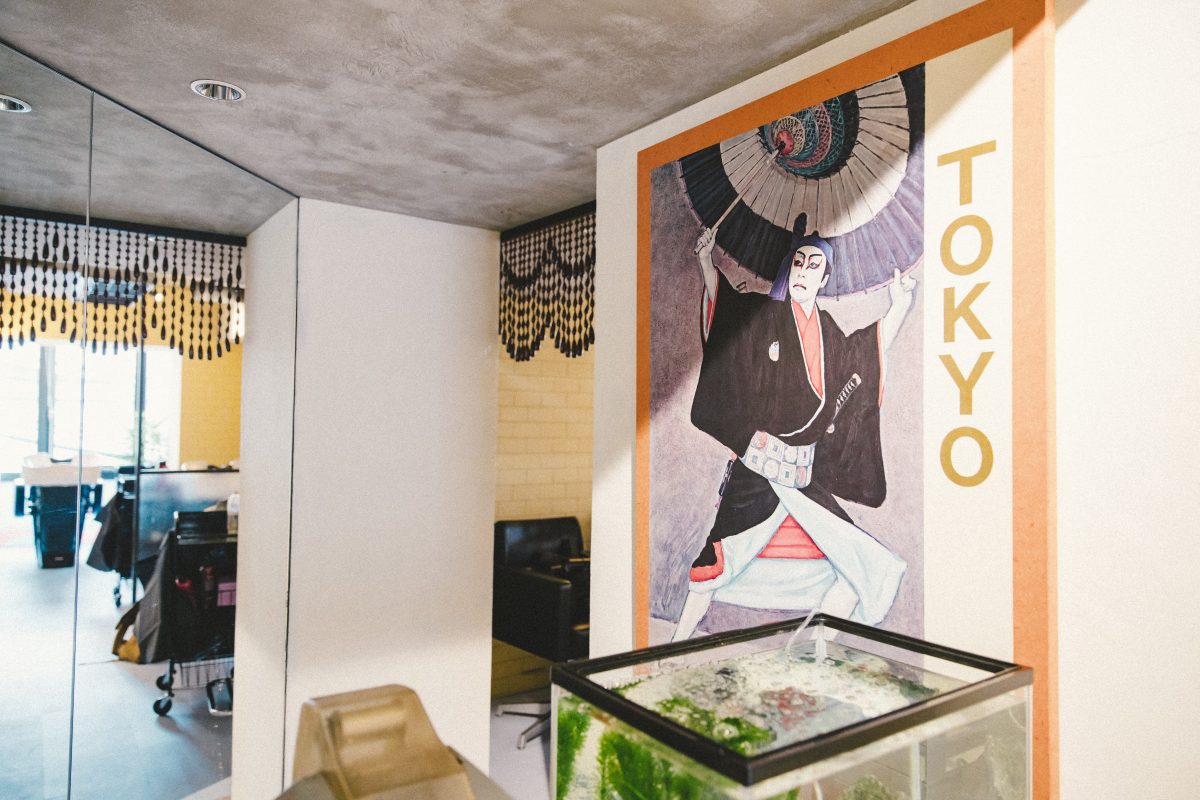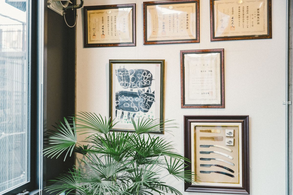 「ただの懐古主義で終わらせないために、友人の新進アーティストであるテイトくんにアートワークをお願いして、東京のストリートのエッセンスを差し込んで、今までにないショップに仕上がったと思います。店舗には、オーナーのお父さんがやっていた理髪店の什器もあえて使っているんです。日本がずっと培ってきた独自の理髪文化の良さを、若い世代の方たちにも知ってもらいたいと思います」