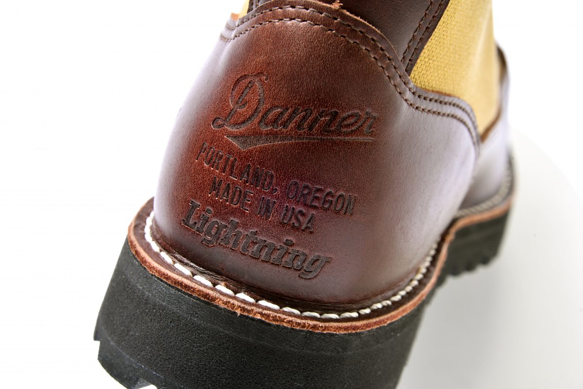 ヒール部分にはダナーロゴと共にライトニングのロゴも刻印されているダブルネ ーム仕様。ロゴと文字がぎゅっと詰まったバランスもグッド!
