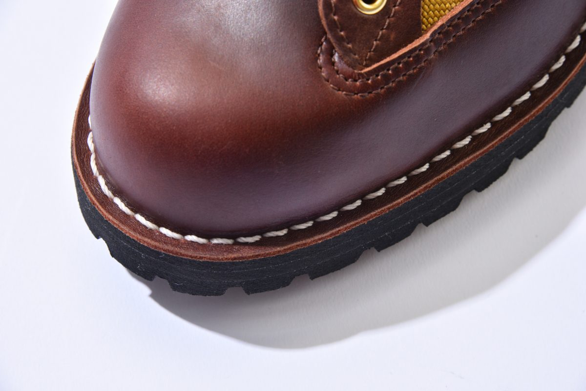 ダナーに適した防水性のあるレザーをホーウィン社に依頼。血筋など革本来の表情を活かしたオイルドレザーで、光沢感もあるのが特徴。