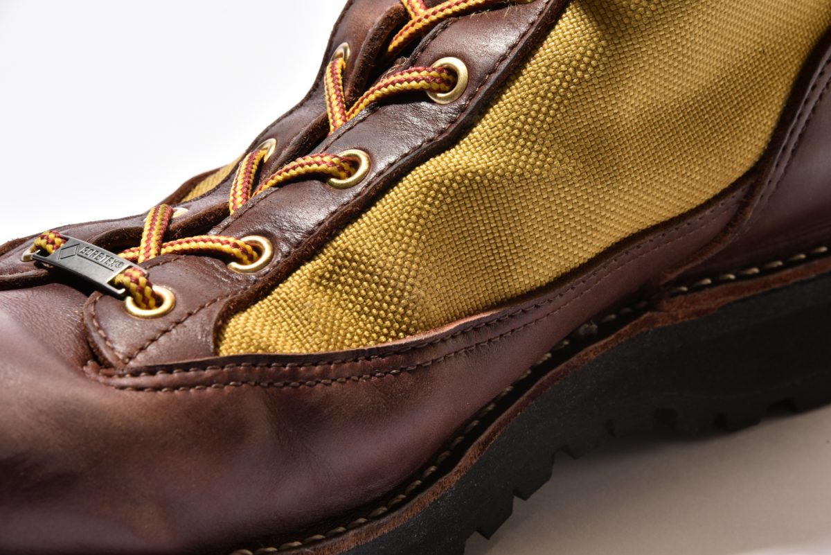 このハイトがキモで、ライトニング的にはパンツを短くロールアップしたときの黄金比が8インチというわけだ。さらに革も通常のダナーライトとは異なり、ホーウィン社に特別にオーダーしたオイルドレザーを採用しているため、履きこむことで風合いたっぷりな経年変化が味わえる。
