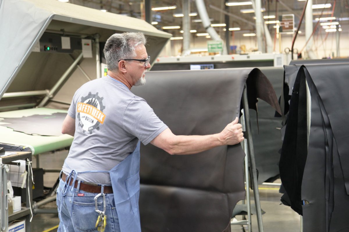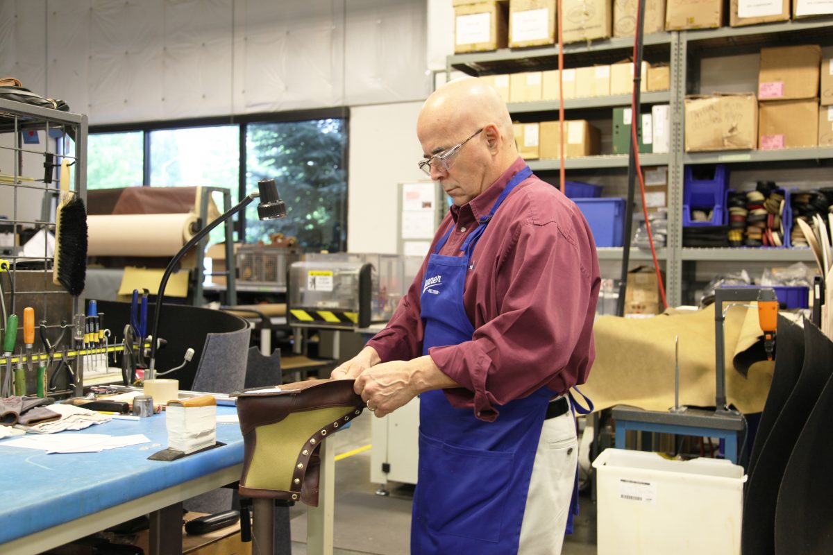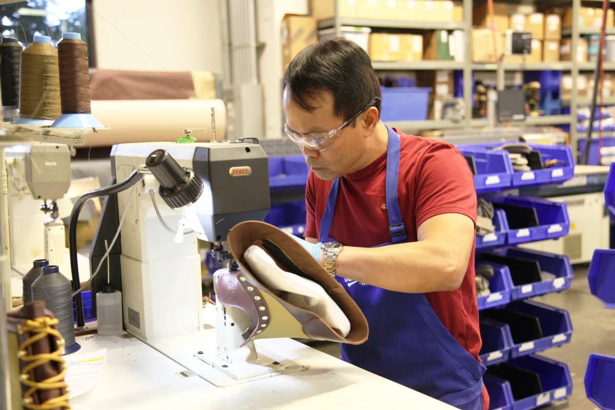 ダナーで使われるレザーはすべて検品される。それは他のメーカーではまずありえない。ジェイさんは厳しい品質管理を任される、数少ないレザースペシャリストのひとりである。