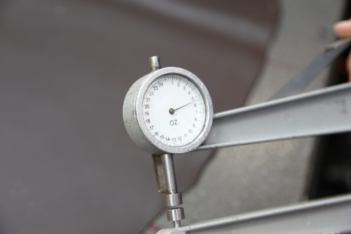 レザーの品質をチェックする項目はなんと5つ。引き裂き、柔らかさ、表皮の剥がれや傷、オンスなどを細かく検査する。