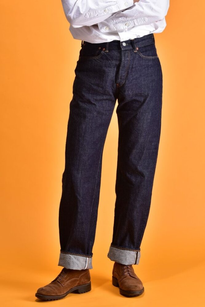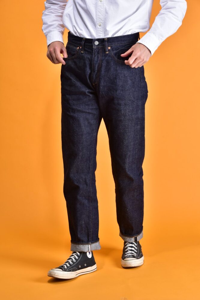 当時のオリジナル生地を現代に甦らせるべく、1950年代のジーンズを分解し、生地の繊維構造まで忠実に再現した原点回帰なベーシックストレート。ブランドの象徴とも言える定番モデルのひとつ。2万4200円