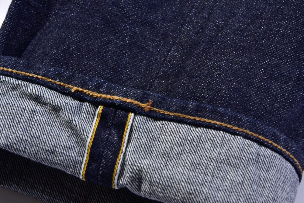 生地は岡山産の13.5オンス。セルビッジはインディゴに映えるイエローを採用している。