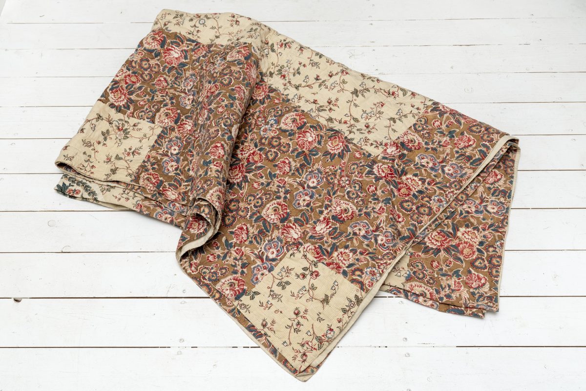 1600年代に英国で生まれたパッチワークキルト。こちらはキルティングなどを入れていない薄手の生地であることから旧い年代のものであることが判別できる。7万5600円