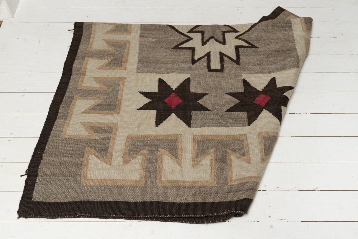 ネイティブアメリカンであるナバホ族の伝統的な織物。「ヴェレロ・スター」と呼ばれる星の柄が施された1枚。年代が旧いものほどヴィンテージとしての稀少性が上がる。参考商品