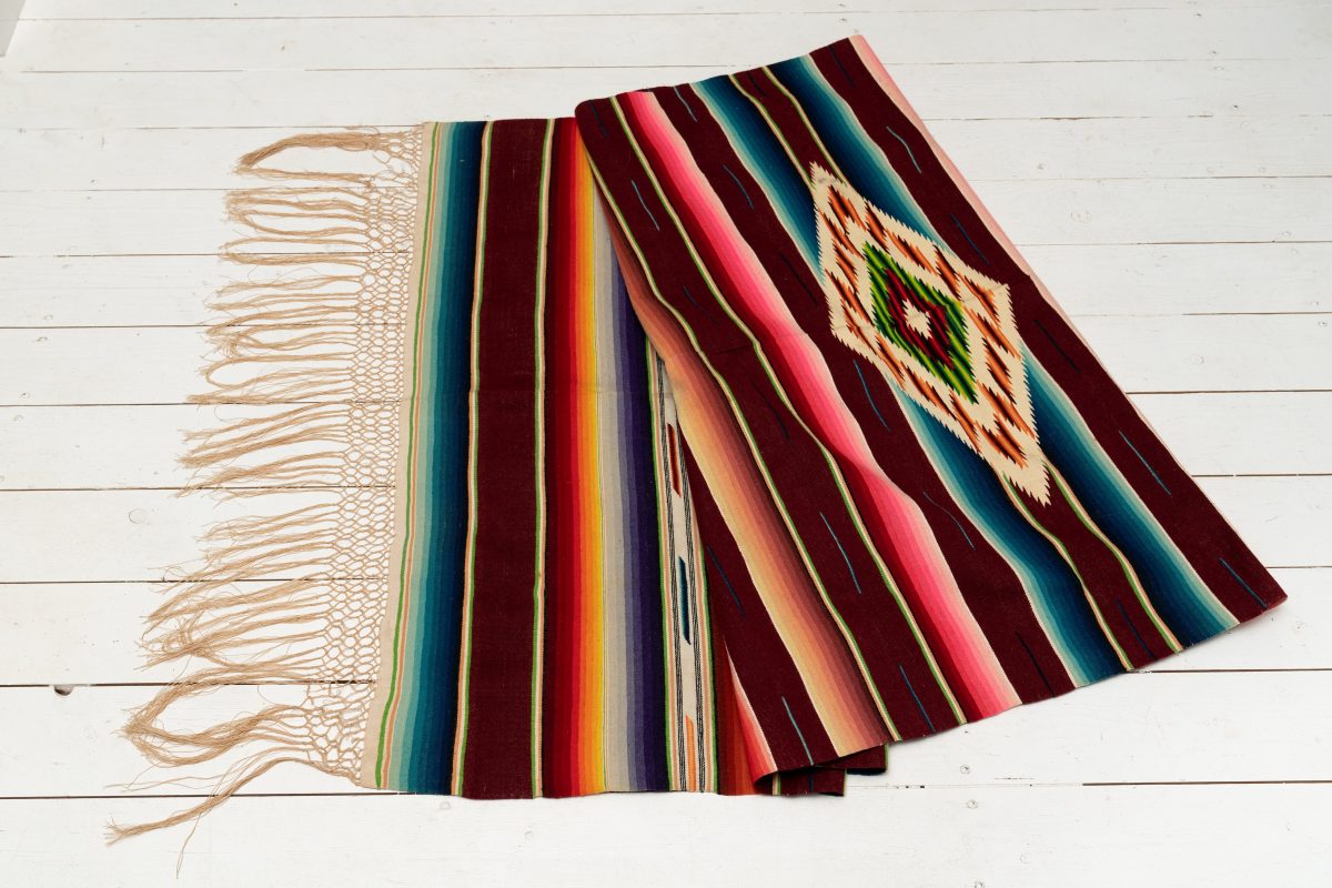 1500年代からメキシコの原住民が身につけていた織物。その多くはサルティヨという街で作られており、非常に人気が高い。中央のダイアモンドシェイプが美しいほど高値になる。4万1040円
